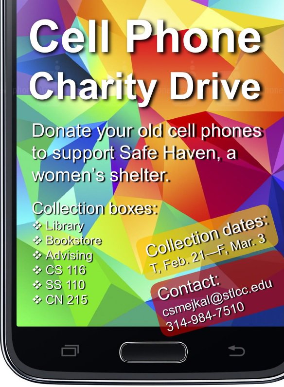 Stlcc Meramec On Twitter The Campus Cell Phone Charity Drive Starts Today Donate Your Old Cell Phone To Support Safe Haven A Local Women S Shelter Https T Co Biuvqtqnph